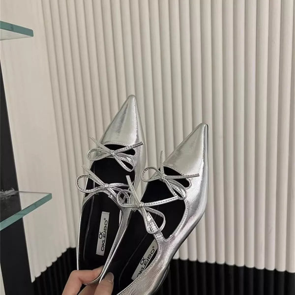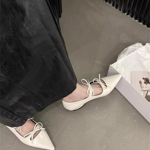 Bow Pointed-Toe Block Heels Pumps
