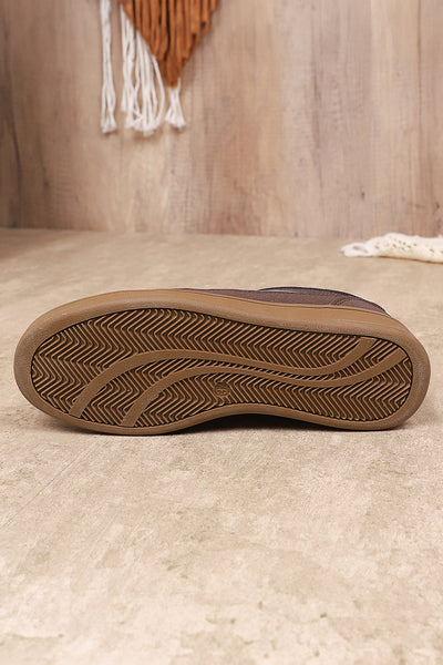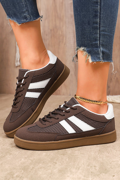 Coffee Breathable Mesh Leather Patchwork Lace-up Sneaker
