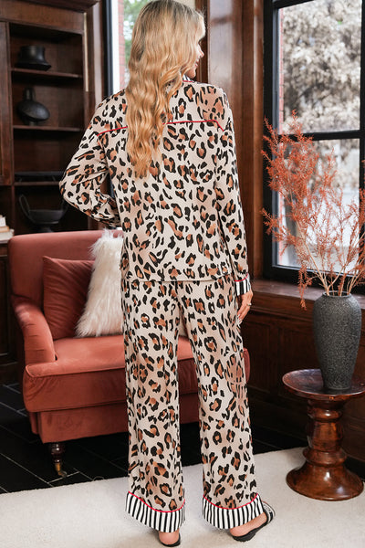 The color base is adorned with striking leopard print and chic colorblock stripes, creating a unique and eye-catching look perfect for lounging in style.
