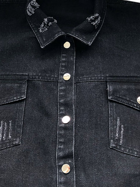 Raw Hem Collared Neck Long Sleeve Denim Jacket