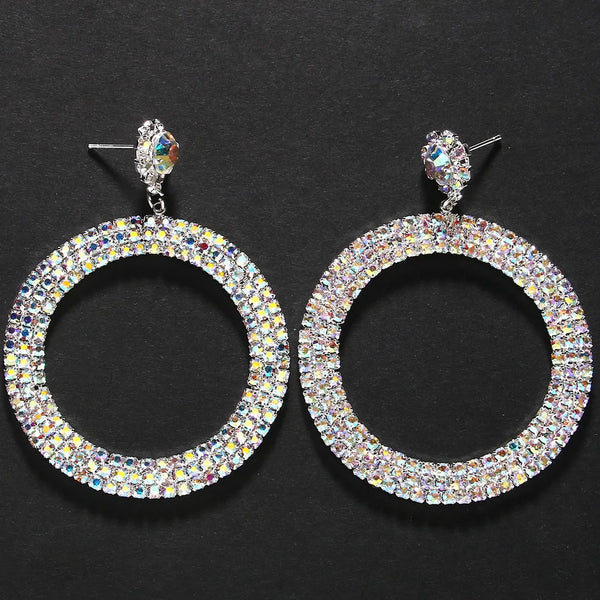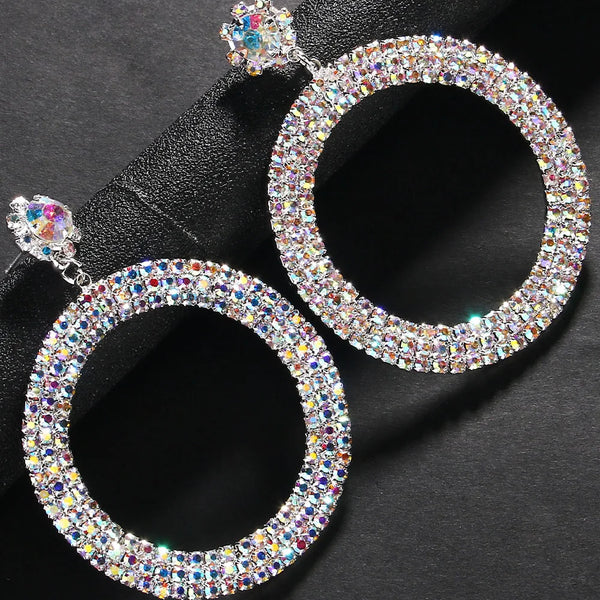 Rhinestone Large Round Pendant Earrings - Statement Oversize Hoop Earrings
