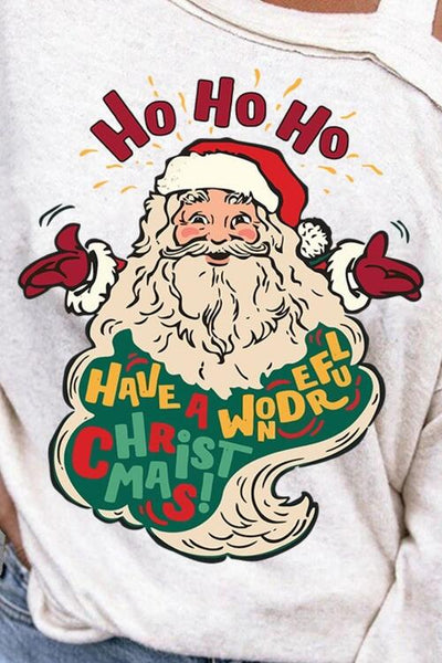 Santa Claus Graphic Asymmetrical Neck Long Sleeve Top