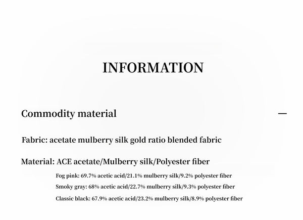 Crafted from imported heavyweight acetate blended with mulberry silk, it offers a delicate sheen and flowing drape. The surface features a subtle, structured pleated texture. With 9% polyester added for enhanced durability and resilience, it resists stretching/shrinking, dries quickly, and is easy to care for—naturally refined in style.