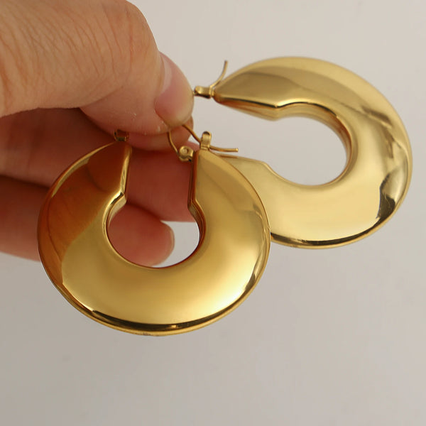 Classic meets contemporary in the Sculpted Shine Chunky Hoops. Crafted with a smooth, sculptural silhouette and finished in radiant gold plating, these hoops deliver bold shine with refined simplicity. Designed to turn heads without trying too hard, they’re the ultimate accessory for effortlessly polished style—day or night.