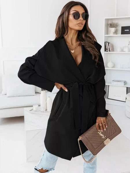 Tie Waist Long Sleeve Outerwear - The PM Edit