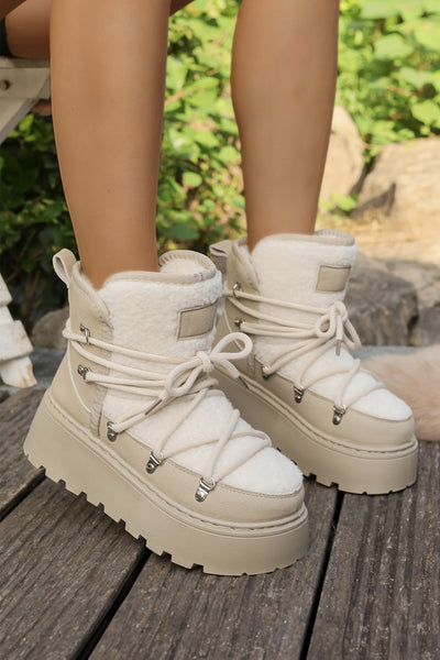 Crafted from high-quality PU leather and sherpa material, these boots offer durability and warmth to keep feet comfortable in cold weather.